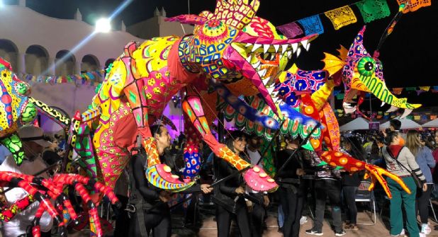 Además, tuvo lugar la exposición de los alebrijes iluminados, un evento que patrocina el Gobierno Municipal de Nuevo Laredo. La empresa que trae la vistosa exposición de alebrijes proviene de ciudad de México y es la agrupación Ilumimetro Monumental quien da vida a los impresionantes personajes.