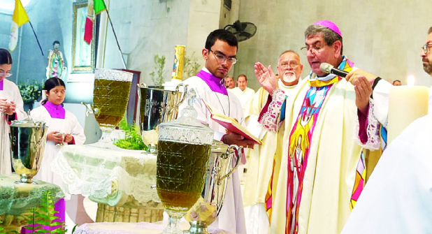 En su mensaje, Monseñor Luis Carlos Lerma, obispo de la Diócesis de Nuevo Laredo, expresó su esperanza en que este Santo Crisma sea fuente de gracia, especialmente en el sacramento del Orden Sacerdotal e hizo un llamado a los fieles a orar por todas las vocaciones.
