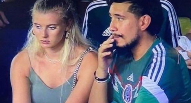 La pareja fue captada por la cámara en el estadio y se puede ver a la joven mujer muy aburrida, mientras que su pareja disfrutaba del encuentro.