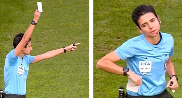 La árbitra Catarina Branco entró en los libros de historia del futbol soccer al convertirse en la primera árbitra en mostrar una tarjeta blanca.