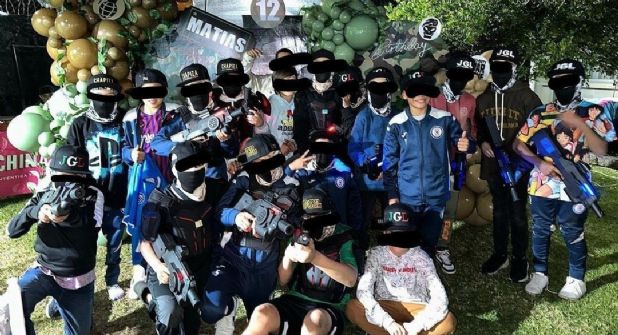 Con gorras que portaban la leyenda de "Chapiza" y otras con las siglas de JGL (Joaquín Guzmán Loera), los menores jugaron con metralletas de juguetes, incluso simularon enfrentamientos.