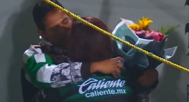 Los hechos quedaron grabados a través de las cámaras de TV Azteca, pues un sector de la tribuna un hombre y su novia, ambos con la camiseta del Santos se abrazan cariñosamente y se dan un beso, pues la mejor respondió con un sí a la propuesta del hombre.