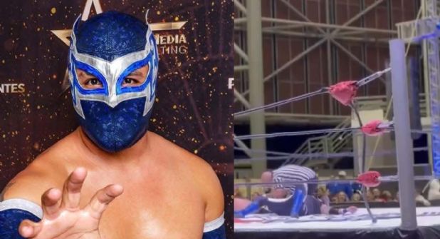 En lo que se puede ver en las imágenes, el accidente sucedió cuando el luchador estaba por realizar una acrobacia. Cuando de repente un tensor de las cuerdas del cuadrilátero se reventó, el luchador, mientras intentaba volar por el aire, terminó lesionándose de gravedad.