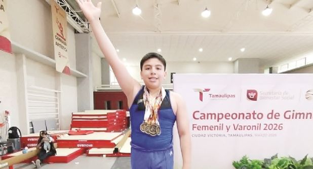El gimnasta Yadier Ríos Soules se mantiene en constante equilibrio y con la esperanza de avanzar a su primera Olimpiada Nacional en el proceso clasificatorio Conade 2026. Yadier, de 12 años, se cuelga siete medallas de plata, seis en aparatos diferentes y all around, durante el Campeonato de Gimnasia Artística Femenil y Varonil 2026, con carácter de selectivo esta- tal, en el Gimnasio Siglo XXI de Ciudad Victoria, Tamaulipas.