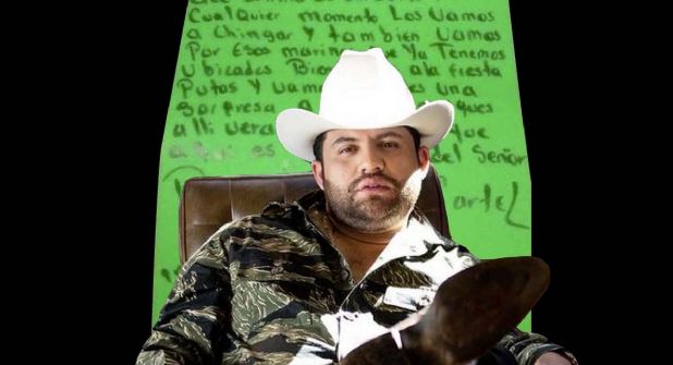 En redes sociales se ha compartido el supuesto mensaje dirigido al cantante, en una cartulina verde se dice que le darán una bienvenida y mencionando algunos nombres de supuestos capos.