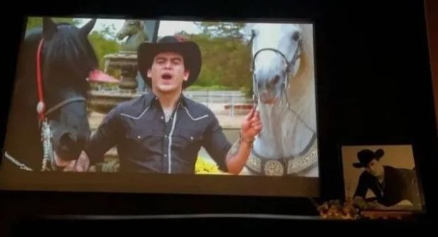 Nancy White Gamble, productora ejecutiva de la película, dirigió un mensaje mientras se observaba un video en el que podía verse al artista interpretando varias canciones mientras montaba a caballo.