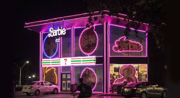 La tienda Barbie Seven Eleven, ubicada en avenida Garza Sada, en la zona del tecnológico, decoró todo el establecimiento totalmente inspirado en Barbie.