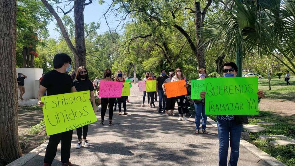 Agobiados por la falta de ingresos y las deudas, este lunes cerca de 60 estilistas realizaron una marcha y protesta pacífica a las afueras de palacio de Gobierno para pedir que se les permita regresar a sus centros de trabajo bajo las medidas de prevención necesarias.