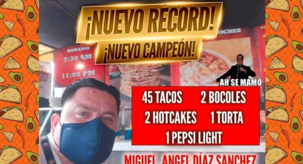 El restaurante "La Mega Taquiza", ubicado en avenida Universidad en la ciudad de Tampico, dio a conocer que un cliente registró una nueva marca en una sola sentada.
