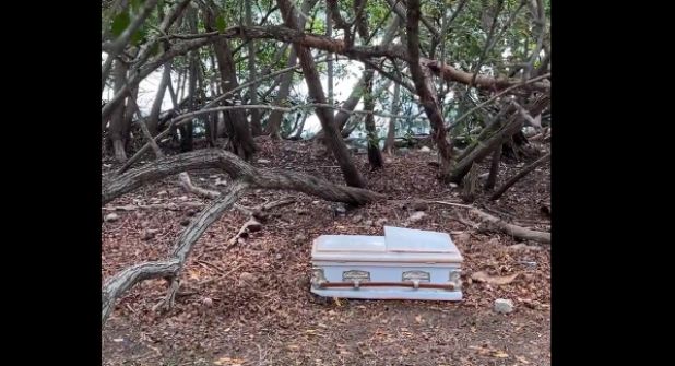 TAMPICO.- La mañana de este viernes en Tampico se presentó un hecho que llamó la atención de varios ciudadanos, pues encontraron un ataúd de niño junto a la Laguna del Carpintero.