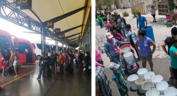 Otros viajeros también explicaron que al acudir a estados vecinos como San Luis Potosí, donde esperan tener el líquido suficiente para cubrir todas sus necesidades básicas y olvidar por unos días la levantada por la madrugada para llenar cubetas y recipientes para almacenar la poca agua que llega a sus domicilios.