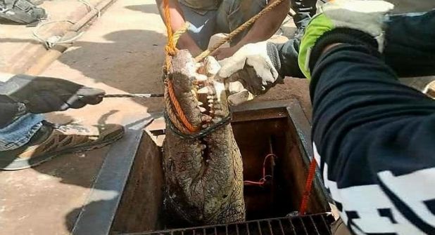 El incidente ocurrió lesta mañana, cuando los trabajadores del departamento de Comapa se disponían a arreglar el desperfecto. Al introducirse se encontraron un cocodrilo de gran tamaño estaba atrapado en el conducto.