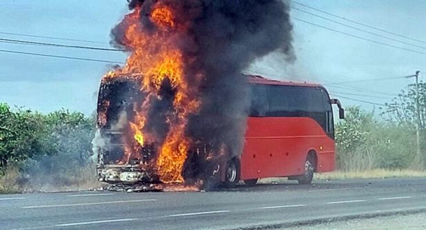 Autobús consumido por las llamas