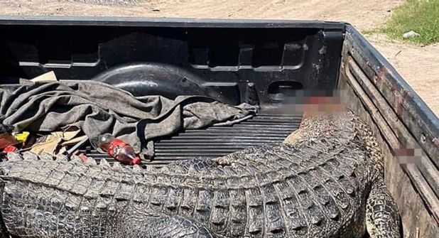 En las imágenes que circulan en las redes, se observa como el animal se encuentra ya sin vida en la caja trasera de un vehículo; hay otras fotos en donde se ve a una personas abriendo las fauces del reptil.
