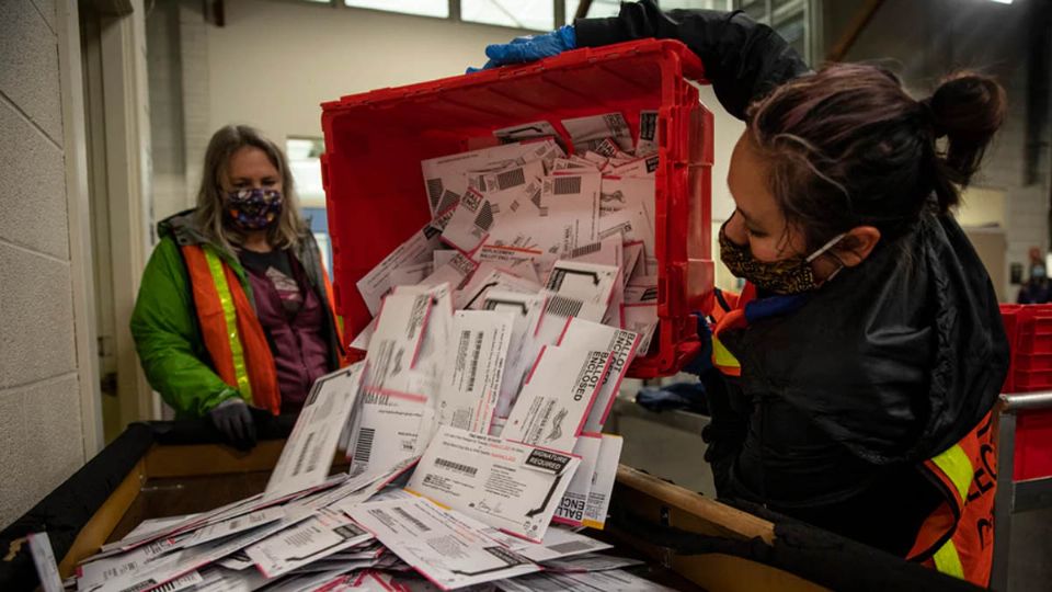 El conteo de las boletas postales toma más tiempo porque cada voto debe tener una firma que se corresponda con la de la tarjeta de registro del votante.