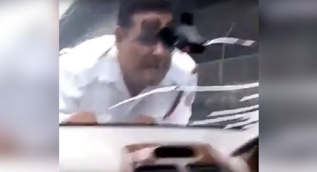 INDIA.- Un video difundido en redes sociales muestra a un policía siendo arrastrado sobre el capó de un coche mientras el conductor intentaba huir. El incidente ocurrió en noviembre pasado en Nueva Delhi, India, pero las imágenes solo han visto la luz ahora.