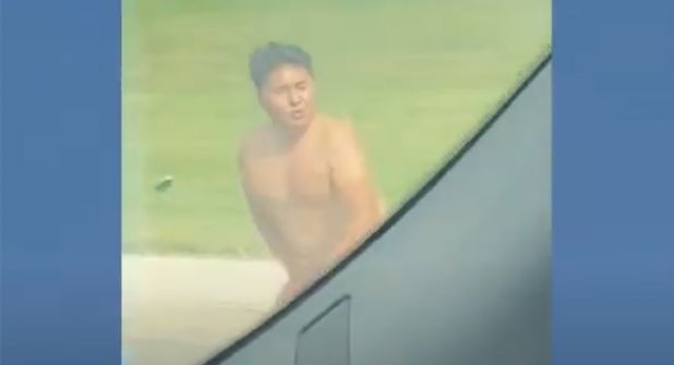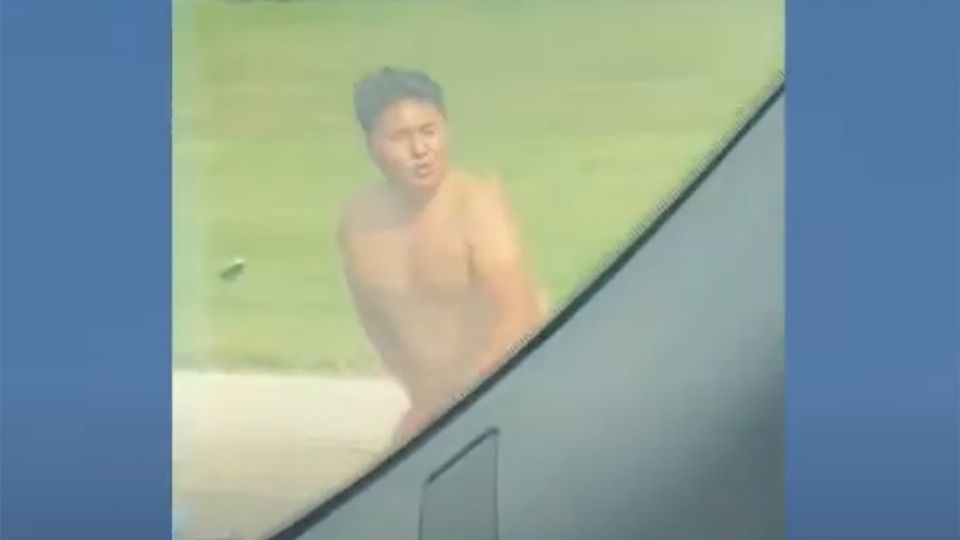 El video, tomado por un conductor, deja ver al sujeto, primero boca abajo sobre el pavimento, inmóvil, y luego vociferando, yendo de un lado a otro, entre los vehículos y en momentos cubriéndose sus genitales, lo que llevó a que los conductores redujeran la velocidad e incluso se detuvieran, para evitar lastimarlo.