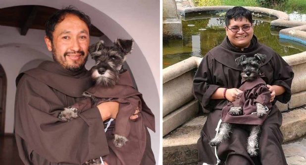 Según el testimonio de personas que tienen relación con los franciscanos, los religiosos adoptaron a su pequeño amigo luego de que lo encontraran abandonado en las calles en condición lastimosa.