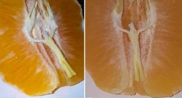 Gene Guglielml, de 57 años es el hombre que tomó la foto, en la que se aprecia la mandarían partida a la mitad, y es justo ahí, en donde se observa, una imagen muy clara, se nota a Jesús en la Cruz.