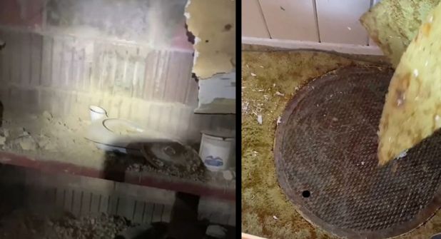 En la grabación se aprecia una sala subterránea cubierta de polvo y de telarañas que cuelgan del techo bajo.