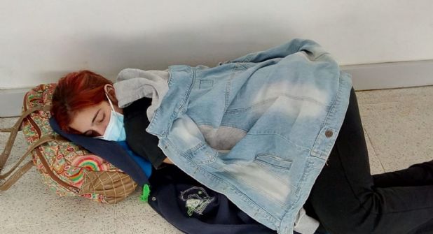 "Me dijo que quería acostarse y le pregunté al de seguridad si podía recostarse en una camilla del pasillo, pero nos dijo que no. 'Me voy a acostar en el piso', me dijo. Después nos vio una señora que nos prestó su campera (chamarra) para taparla por el frío” .
