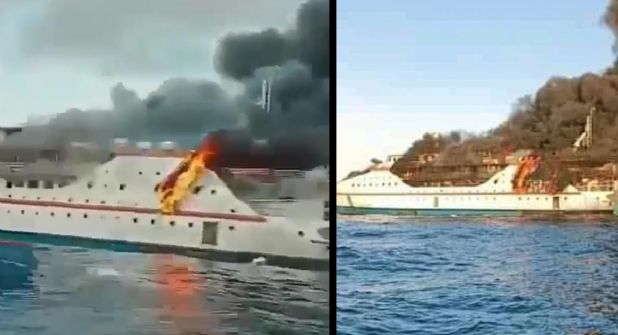 Las llamas se propagaron rápidamente en el ferry, al ver el fuego enseguida la embarcación se vieron obligadas a buscar refugio saltando al agua.