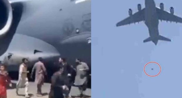 El lunes, un hombre afgano se grabó colgado de un avión militar de Estados Unidos en pleno despegue.