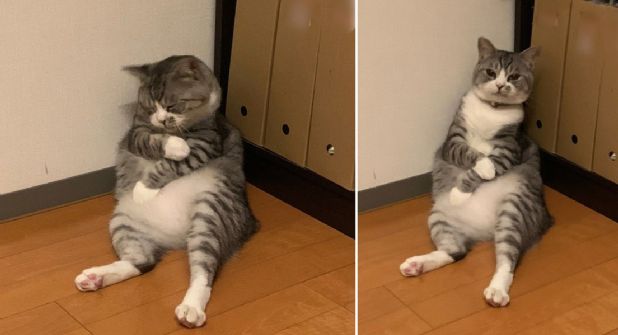 Es casi una costumbre que estos felinos den que hablar a diario por redes, y este gato no ha sido ninguna excepción. Sentado sobre sus dos patitas traseras, con las dos delanteras cruzadas (una sobre la otra) sobre su panza, el animal estaba intentando descansar sin ser consciente de que le tomaban un par de fotos.