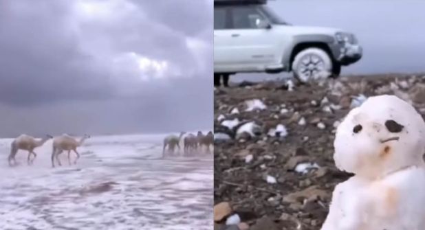 Fueron varias tormentas de nieve y granizo las que transformaron los paisajes de Arabia Saudita y sus alrededores, despertando el entusiasmo entre los lugareños.