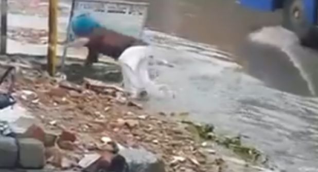 A través de un video que se ha vuelto viral, se aprecia que un hombre en competo estado de ebriedad cae a una coladera, que lleva corriente pues se han presentado lluvias. De milagro, testigos pudieron salvarle la vida y todo quedó en un gran susto.