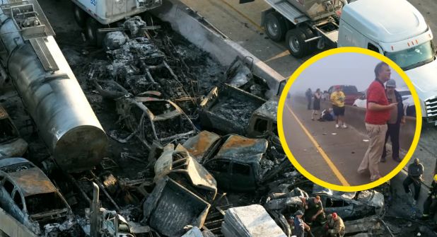 Esta mortal combinación causó la aparatosa carambola, donde al menos 150 autos quedaron aplastados, amontonados unos encima de otros y envueltos en llamas. Muchos de los conductores salieron de sus vehículos por sus propios medios, esperando a los servicios de emergencia a la orilla de la carretera, incrédulos de la masiva carambola.