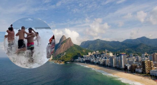 A través de la red social X, antes Twitter, se puede observar el momento en el que un gran número de bañistas es arrastrado por una gran ola en la playa de Leblon, Río de Janeiro.