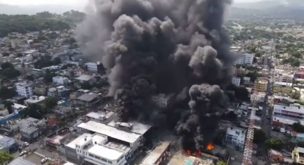 El hecho ocurrió en la provincia San Cristóbal de República Dominicana, a unos 24 kilómetros de la capital Santo Domingo donde se registró un potente estallido de un local comercial. La explosión causó un incendio y una gigantesca columna de humo, dejando a los comerciantes con pocas posibilidades de salir del lugar.