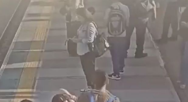 En el video se puede ver a varias personas, un joven camina y se para porque la mujer en cuestión va a pasar frente a él, ella se dirige a las vías y él se asusta y no logra evitar la tragedia.