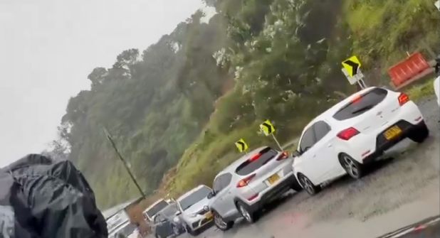 Video del momento en que derrumbe atrapa a vehículos en Colombia
