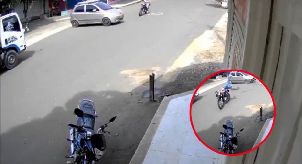 Los hechos ocurrieron el primer día de Año Nuevo, sobre las calles de El Doncello, al sur de Colombia, donde el hombre transitaba a bordo de su unidad de dos ruedas. En las imágenes, captadas por una cámara de seguridad, se muestran los momentos previos a la colisión.