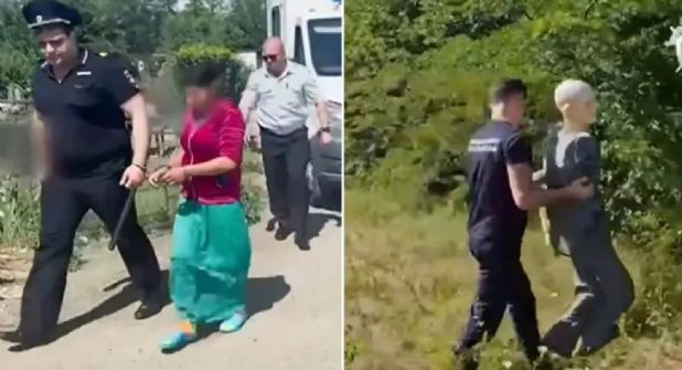 La mujer fue escoltada por agentes del Comité de Investigación de Rusia, y por medio de una cámara, se capturó la escena donde muestran a las mujeres arrastrando el cuerpo al bosque.