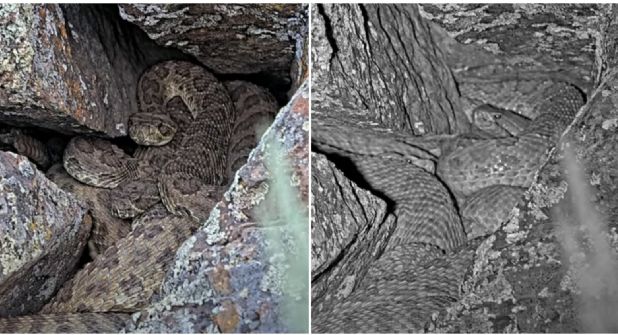 En la grabación queda registro de un refugio natural donde las serpientes de cascabel han optado como su ‘hogar’. La formación rocosa está ubicada en el norte de Colorado, en Estados Unidos.