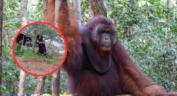 En el video compartido en la plataforma de Facebook, se puede ver a un gran orangután que se traslada por el costado de una casa, pero lo que sorprende es la perspectiva del video, la forma en que se grabó y hace parecer que el primate es mucho más grande que la casa.
