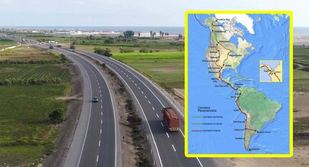 La carretera tiene 48 mil kilómetros de extensión y es la más larga del mundo, ya que comienza en Alaska, pasa por Canadá, Estados Unidos, México y termina hasta Chile, el camino es un sistema de carreteras que cruza todo el Continente Americano.