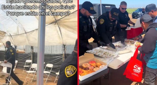 El video, compartido en la cuenta de TikTok @el_texano805, muestra a los agentes visitando un campo agrícola con comida para compartir con ellos, entregando tacos y donas en claro gesto de orgullo por tener a estos trabajadores en dignificantes labores.