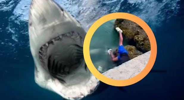 Un pescador vivió una experiencia aterradora cuando, al intentar liberar su caña de pescar que había quedado enredada en un tiburón, resbaló y cayó al agua directamente sobre el animal.