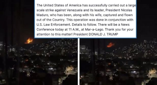 "Estados Unidos ha llevado a cabo con éxito un ataque a gran escala contra Venezuela y su líder, el presidente Nicolás Maduro, quien, junto con su esposa (Cilia Flores), fue capturado y expulsado del país. Esta operación se realizó en colaboración con las fuerzas del orden estadounidenses. Se darán más detalles próximamente. Hoy a las 11:00 a. m. habrá una conferencia de prensa en Mar-a-Lago. ¡Gracias por su atención! Presidente Donald J. Trump", dice el post del mandatario.