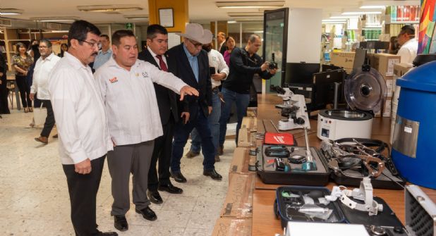 De manera complementaria, el rector hizo entrega de equipo tecnológico que incluye 13 cámaras tipo Policom para videoconferencia, 15 equipos de cómputo de escritorio, así como pantallas que permitirán modernizar los procesos de enseñanza mediante entornos digitales interactivos