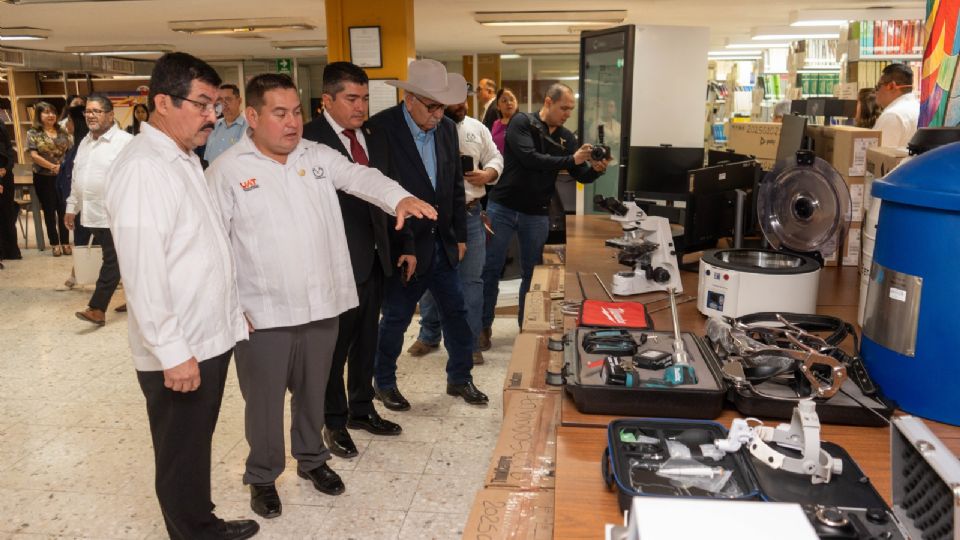 En el marco de su compromiso con la innovación científica y el fortalecimiento de la formación profesional, el rector de la Universidad Autónoma de Tamaulipas (UAT), Dámaso Anaya Alvarado, realizó la entrega de equipo tecnológico y especializado de última generación a la Facultad de Medicina Veterinaria y Zootecnia “Dr. Norberto Treviño Zapata”.