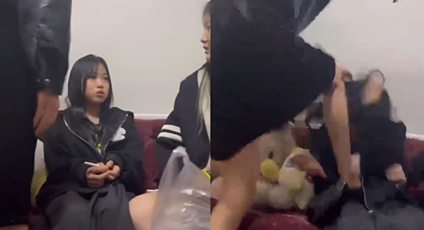 A pesar de los desesperados intentos de la víctima por protegerse, sus compañeras la acorralan y se turnan para golpearla salvajemente. Incluso tras intentar refugiarse en una esquina, el grupo la derriba reiteradamente, terminando el ataque con la menor reducida en el suelo, protegiéndose la cabeza.