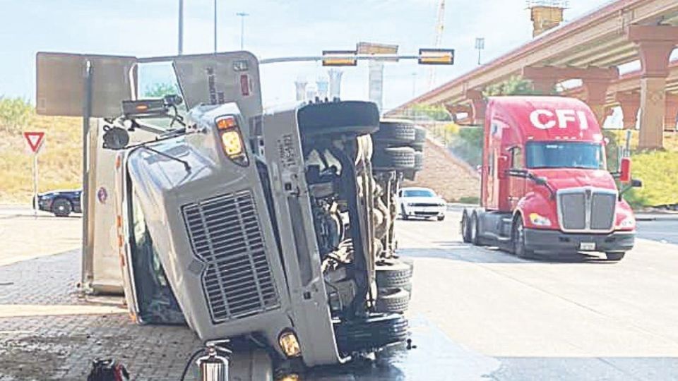 Y cerró la cuenta un tractor-tráiler volteado en Los Botines, comunidad a noroeste de Laredo, Texas, obligando a impedir el cruce vehicular en la carretera 83 Norte y la carretera interestatal 35, rampa número 18, ubicada en la milla 18.
