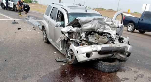 Choque el domingo 11 de abril a las 09:00 de la mañana en el sur de Laredo, arrojó saldo de cuatro personas graves, entre ellos un niño de 9 años de edad.