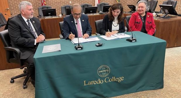 La firma del acuerdo estuvo a cargo del Mayor Víctor D. Treviño y la Presidenta de Laredo College, Doctora Minita Ramírez, quienes fueron acompañados por directivos municipales y de la institución educativa.
