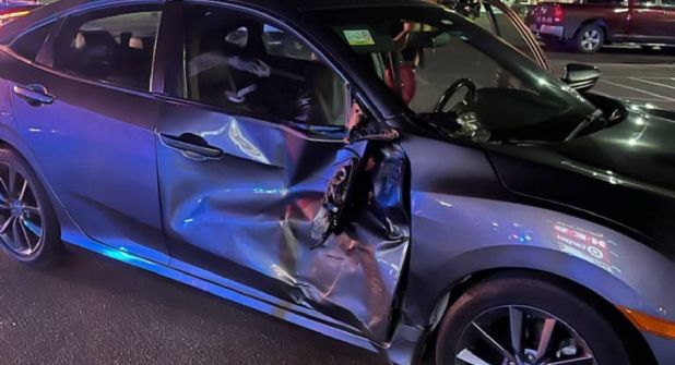 A las 08:50 de la noche en la cuadra 2 Este, de bulevar Del Mar, frente a la sucursal de una conocida abarrotera texana, un adolescente en su moto negra, se impactó contra el costado derecho de un Honda Civic color azul, el golpe fue tal que sumió la puerta del copiloto.